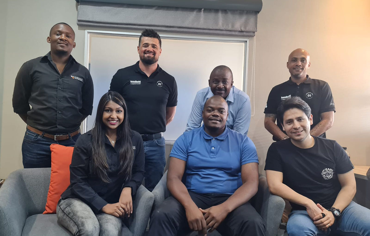 Pictured from left to right: Hugh Maleka - Execution Excellence Manager Ramjack, Thomas Walters – Rugged Mobile, Tefo Kometsi - Project Technician Ramjack, Arlin Visagie – Rugged Mobile, Shaconi Naidu - Account Services Lead Ramjack, Thabo Moremi - Project Technician Ramjack, Diego Romero - Ramjack.